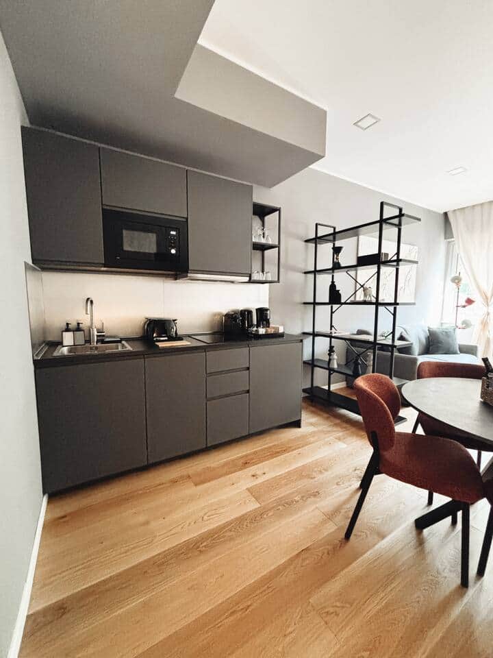 L'elegante abitazione è attrezzata con tutto il necessario per farvi sentire a casa: un salotto accogliente, una camera da letto con letto matrimoniale, un bagno moderno e una cucina completamente fornita.